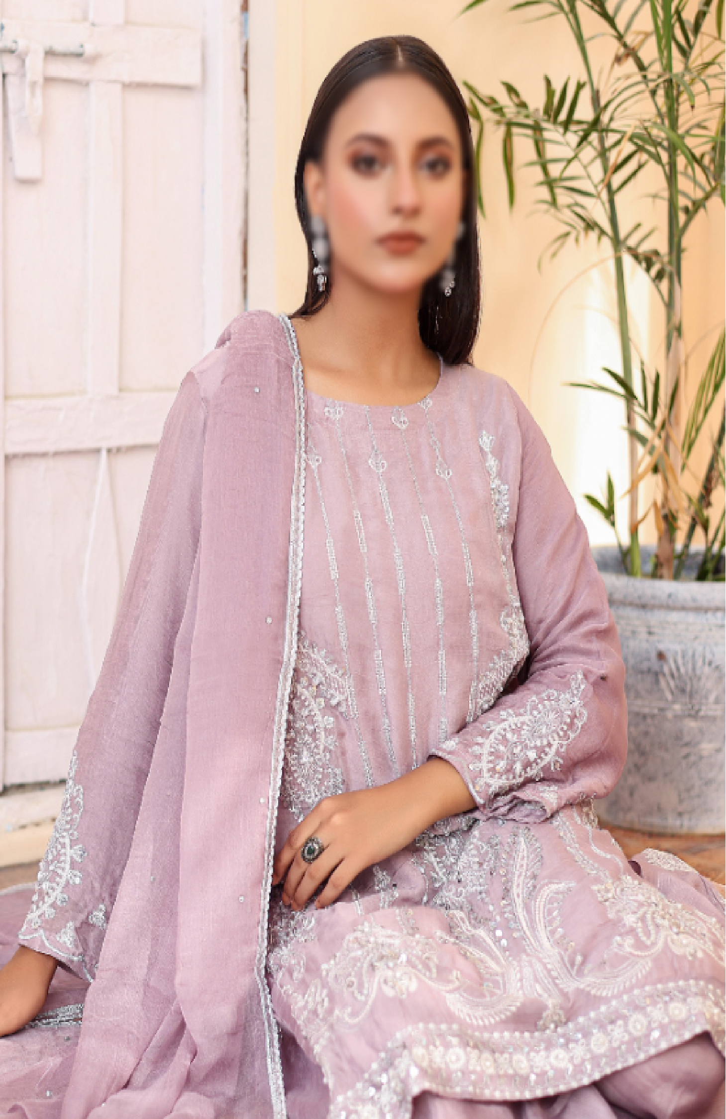 Details: 3Pcs suit  with a hand-embroidered Chiffon shirt, embroidered Gharara and a stylish chiffon Dupatta.